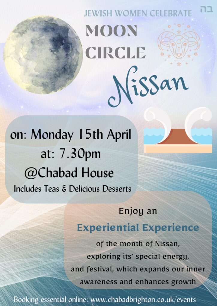 The Moon Circle for Nissan A gathering of sisterhood and spirituality for women exploring the Moons energy according to Jewish tradition. The moons cycles are defined by the Jewish calendar